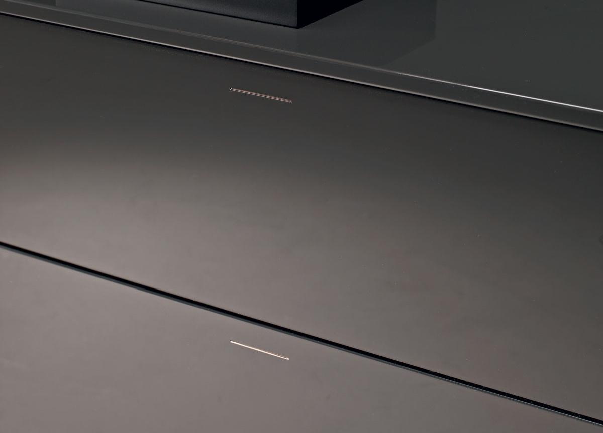 Available as standard in chalk white matt lacquer, you can also select from any of the other matt lacquer colours in the Molteni collection, and for a small extra charge you can choose a gloss lacquer for the drawer fronts. The top can be selected in a matching lacquer, a wood finish, as well as coloured or etched glass.