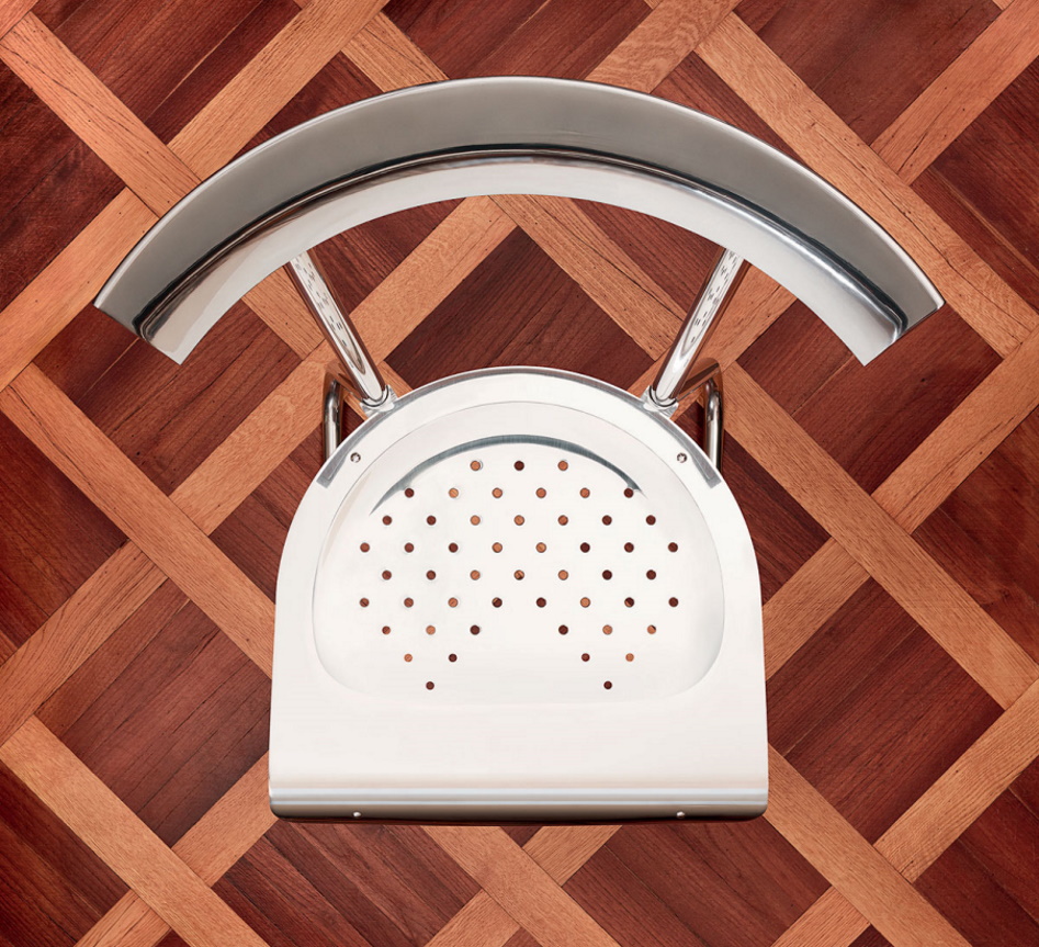 Version entirely built from polished aluminium.Version with seat and backrest covered in hide leather from the Molteni hide leather range: natural, black, dark brown, white, ivory, dove grey, red, hazelnut, tobacco, hunter green, mud green, almond.