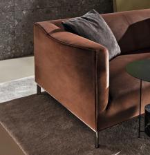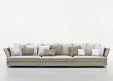 Holiday features a wrap-around back against which the cushions are arranged, a light frame, chic, comfy, characterful seats, sartorial techniques for the details, and a host of different fabrics and leathers from the Molteni&C range to choose from for the covers. Smart feet can be selected in shiny chrome or pewter.