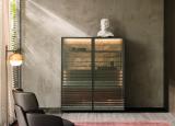 Featuring two tip-up doors, which, when closed, reveal the contents thanks to both the transparent stopsol glass and the internal LED lighting, and when open, folded back against the side of the piece for full access to the internal space, transform the sideboard like a chameleon.