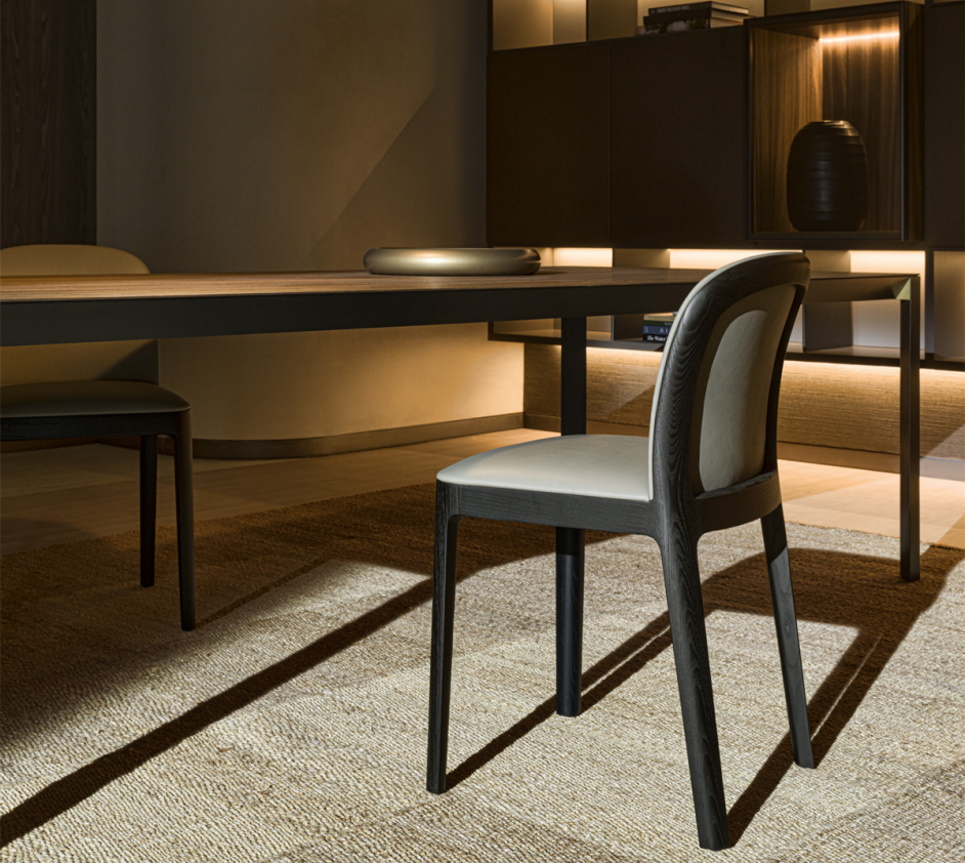The Molteni Tea dining chair by Jasper Morrison for Italian designer furniture brand Molteni & C has a solid wood frame and combines traditional hand-craftsmanship with contemporary style.