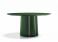 A striking feature of the Mateo table is its slightly flared cylindrical pedestal base which has been divided vertically in two. Made of a curved plywood structure, the symmetrical halves meet in an open furrow, creating a completely new and unexpected design element. The internal frame is further strengthened by a hidden rod in lacquered metal which ensures stiffness where the base meets the top.