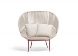 Frame in merlot red solid aluminium, seat back woven in ecru polypropylene rope. Cushion covers in fabrics from the Molteni & C collection, or in customer’s own fabric, subject to approval of fabric type by Molteni. For correct ergonomics Molteni suggest that you add two back cushions or one large enveloping back cushion.