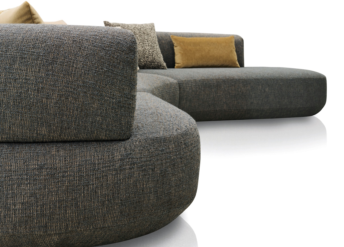 The Moon curved sofa is a modular sofa with a wealth of options for both size & covers. There are 2 types of end unit, one with arms, & one chaise, both available in four sizes, as well as a middle module, all of which can be combined together to create any number of seating arrangements,