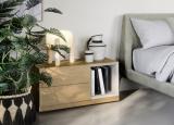 There are several standard widths of Easy chests and Tetris open units to choose from and they can also be placed side by side and covered with one long top, an example of which is seen and priced here. The images show a 2 drawer 46cm wide Easy chest in a rovere miele finish with a corda matt lacquered Tetris open unit 30cm wide sitting on 7cm base in rovere miele finish.