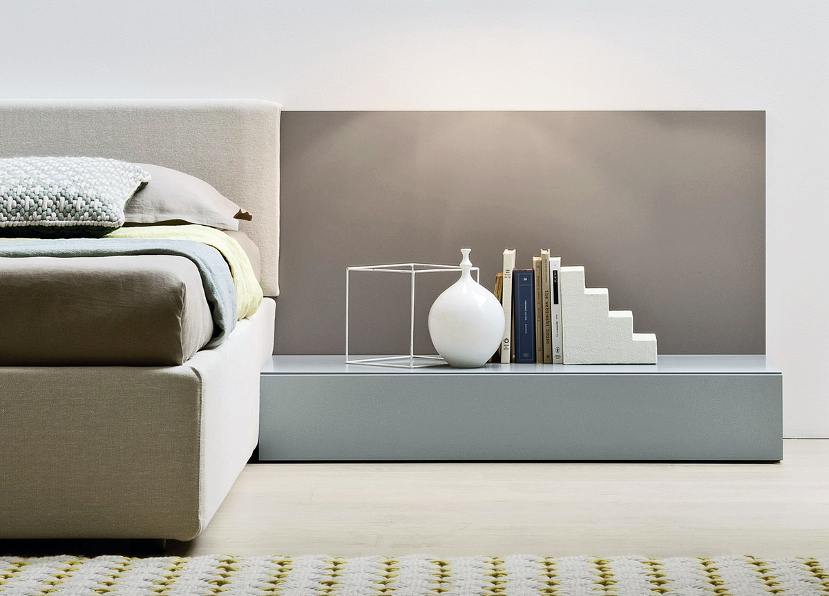 The Novamobili Easy collection by Valeria Carlesso is a highly modular & flexible system of floor, bench, or wall mounted bedside cabinets & chests of drawers from Italian brand Novamobili.