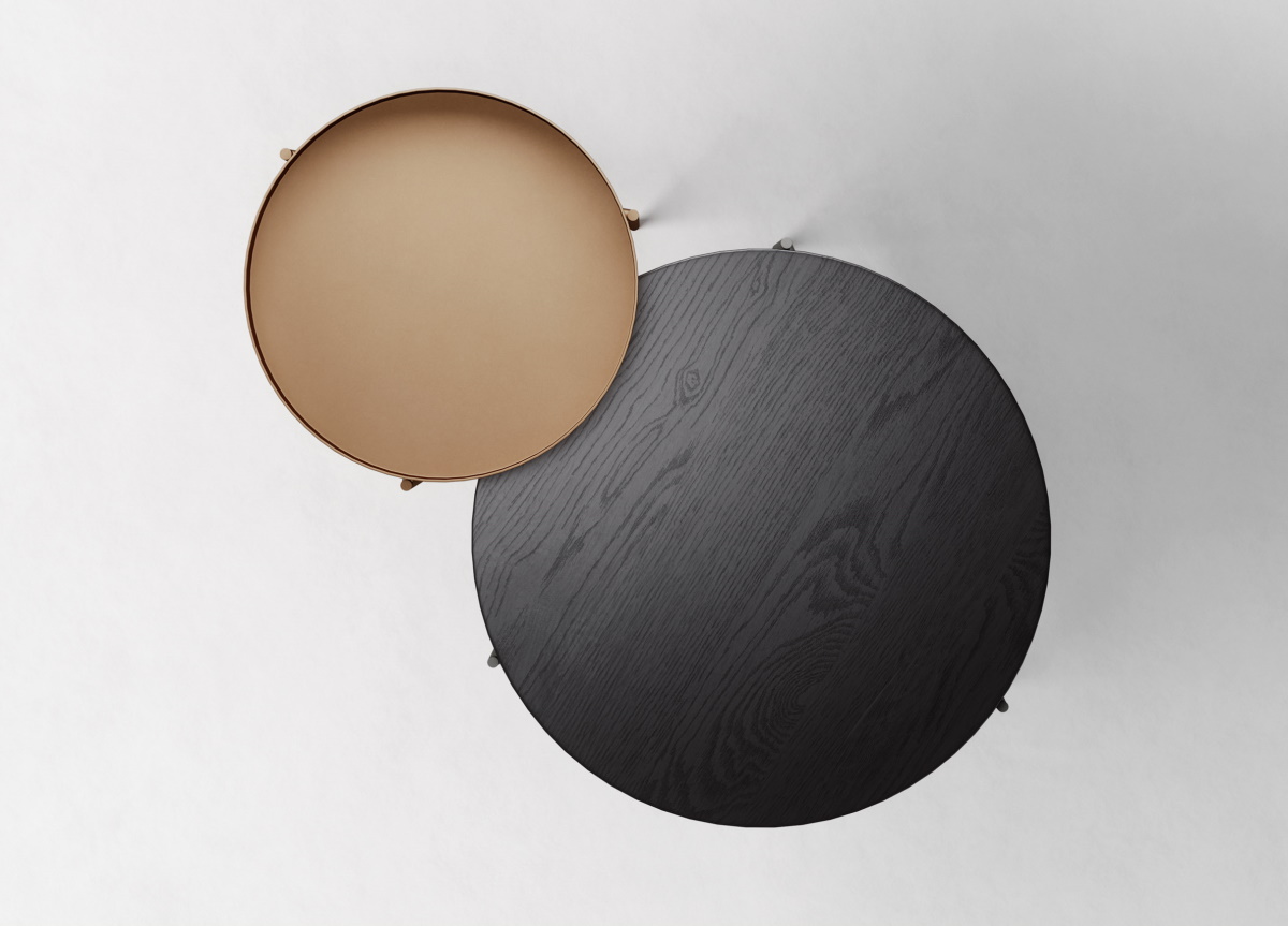Shown in the pictures, but listed seperately, is a table with a metal tray table top which can be selected in matt, oxidised or metal lacquer finishes & can have inserts in wood, eco-wood, ceramic, marble or leather. Both styles of table have legs in a range of matt, oxidised or metal lacquer finishes.
