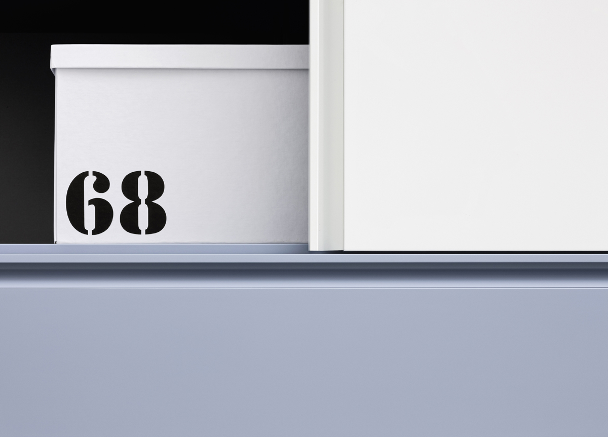 Each module has a door which has an integral vertical profile which makes up the handle, this is available in any of the matt lacquer colours, though some are not standard colours and therefore incur an extra charge. The internal fittings are available in three finishes. We have samples of all the available finishes in our London showroom.