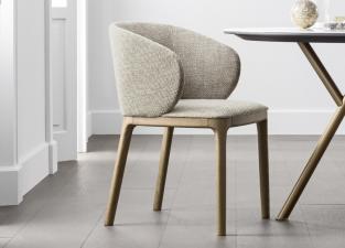 Legs in several stained wood finishes or noce canaletto. Upholstery is available in all of the fabrics, leathers and ecoleathers in a variety of categories, or you can supply your own fabric (subject to approval), or we can suggest any of the easyclean fabrics from Romo or Villanova