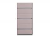 The Novamobili Pitagora tall chest of drawers has six drawers with adjustable Quadro metal runners featuring a silent closing system. A stylish recessed profile grip in a range of matching or contrasting finishes accentuates the tidy design of the piece.