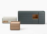 Sly has pared-back lines that provide unlimited design freedom to create numerous configurations, from basic bedside tables to more complex, capacious chests of drawers which are also perfect as living room storage units. Sly can also be selected with LED lights for the open units, or with an undermounted wireless charging unit which lets you charge your phone by simply placing it on the top, with no need for cables.