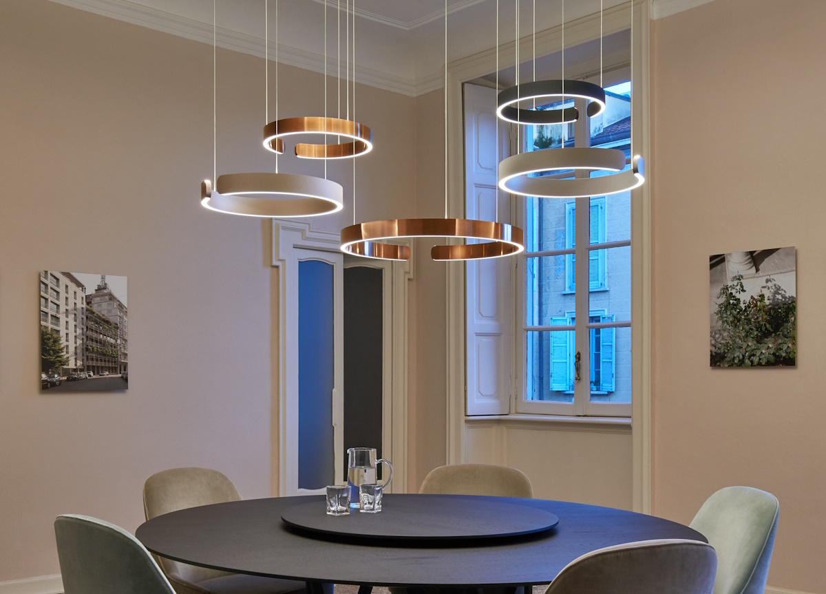 Available in two sizes, each light has a beautiful circular bulb encased in a stunning frame which can be selected in a range of finishes, including rose gold or bronze. Mito Sospeso can be suspended above kitchen or dining tables, or even breakfast bars, and used individually or grouped together to create the perfect lighting solution for any room.
