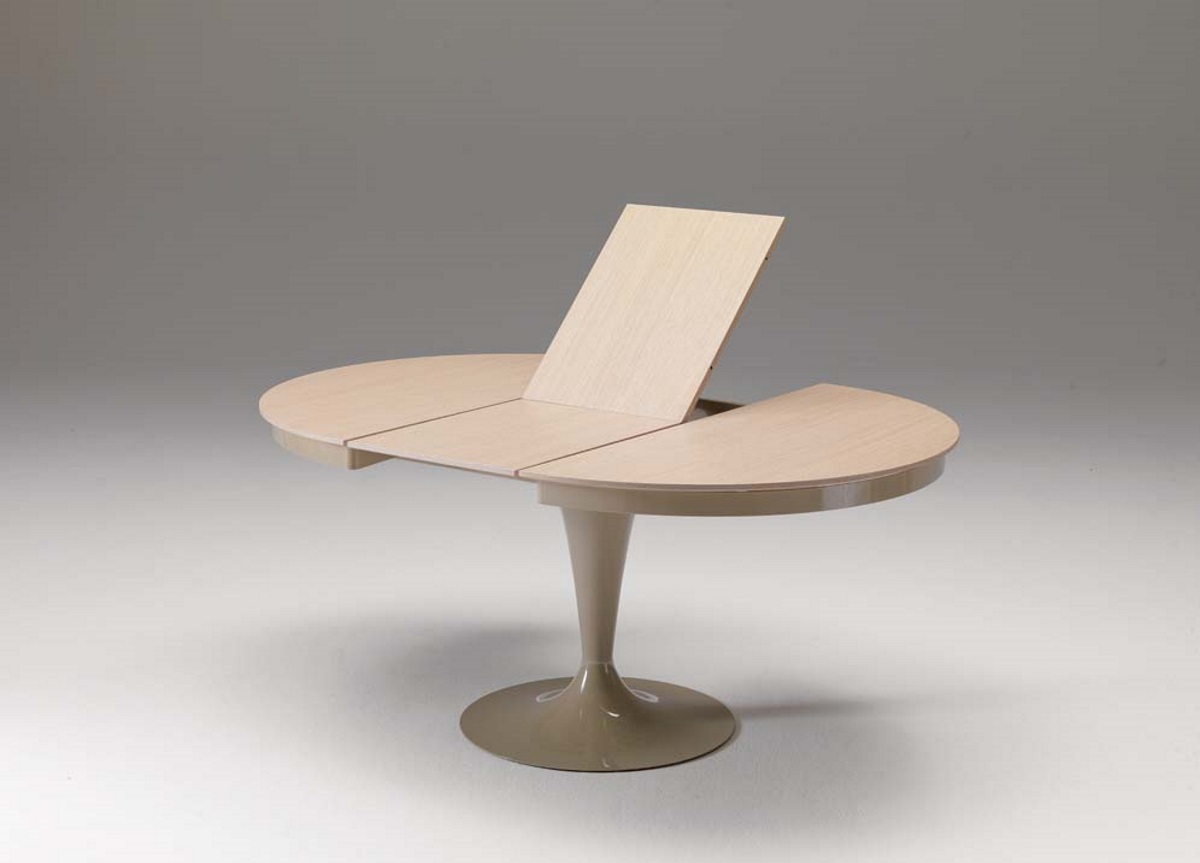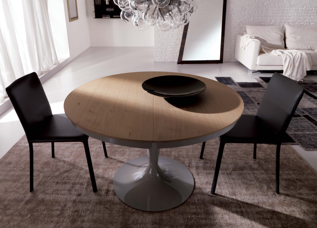 The Eclipse extending dining table by Ozzio has a beautiful woodentable top complemented by a smooth mechanism which allows the round table to easily extend to an elliptical table, which will seat 8 people comfortably.