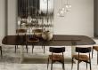The Gem dining table by Andrea Lucatello for Italian brand Ozzio has a lovely oval shaped table top available in several glass, wood inlay or ceramic finishes with a striking geometric interlocking sheet metal base in either champagne or bronze or a combination of the two.
