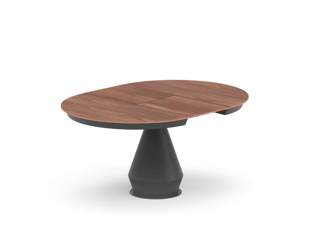 Seen here with a Canaletto Walnut table top and a matt graphite metal base. There is also a version of this round extending dining table in a range of glass, or pyro-ceramic finishes, as well as a fixed Lycos dining table - see related products.