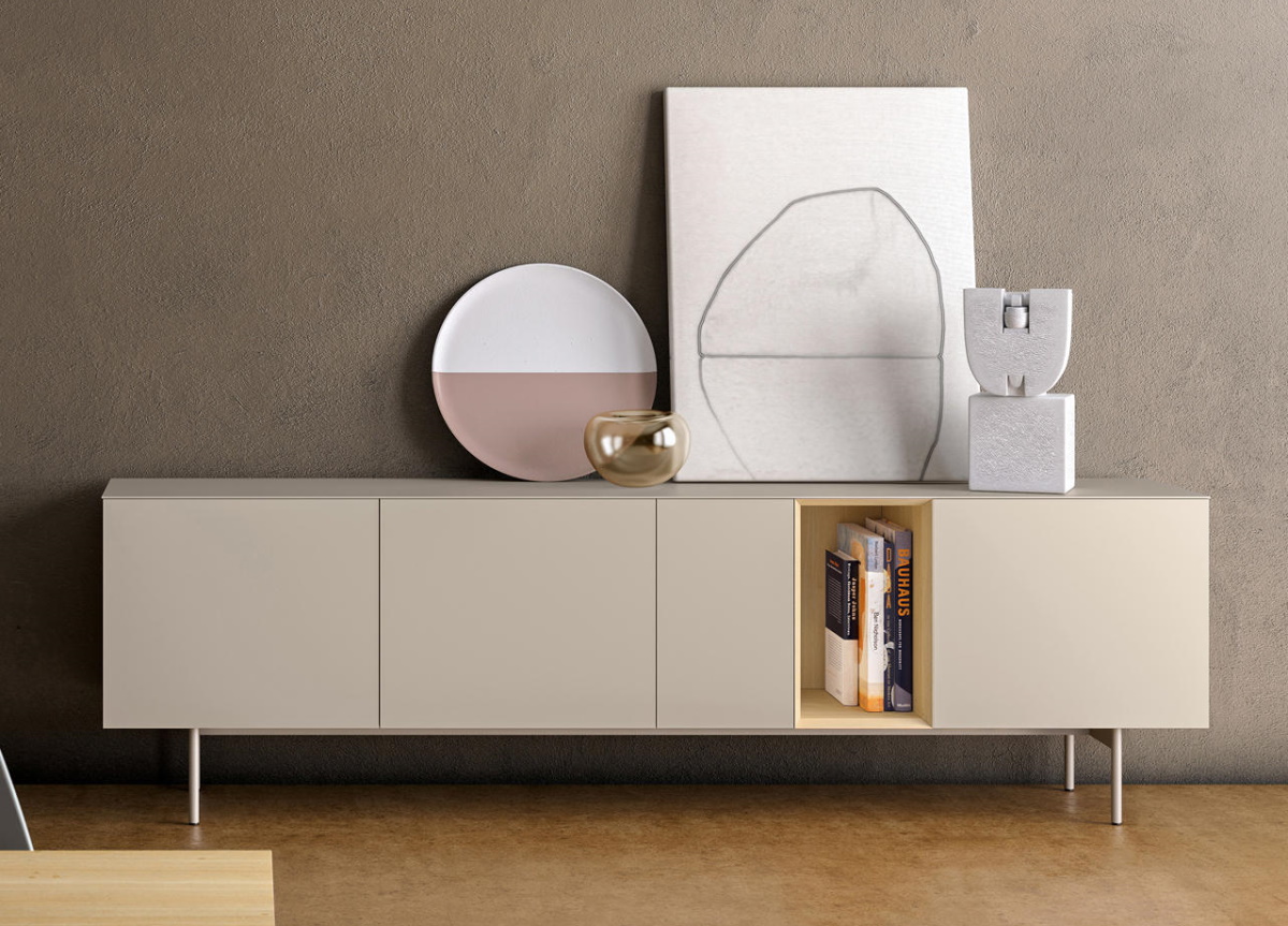 There are several different versions of the Brema sideboard, this one has four doors as well as an extremely useful open compartment. Other Brema sideboards are available with a combination of doors, drawers and open compartments and can be seen in the related products below.