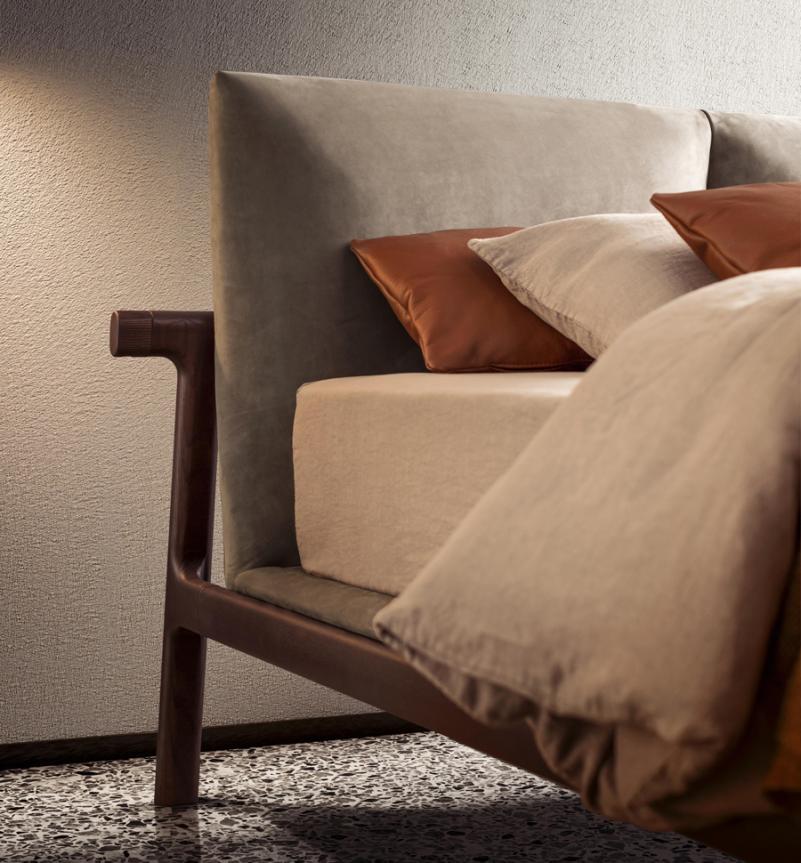 For the headboard and bed surround upholstery you can choose from several categories of fabric, ecoleather or leather from the Pianca collection, or you can supply your own material subject to approval. Samples can be viewed in our London showroom and fabric cuttings can be mailed out to you.
