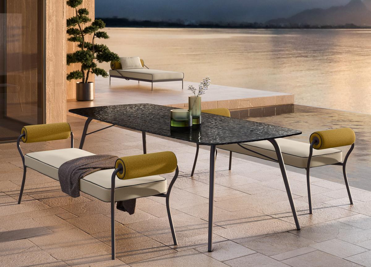 The Levante Out collection also includes three sun loungers, modular sofas, dining & armchairs, and bar stools, which can be seen in the related products, together with the Eolo dining table and some of the Pianca Levante Indoor seating range.