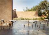 Pictured here with the Pianca Eolo garden table, the Levante Out collection also includes a dining chair without armrests, modular sofas, a reclining lounger with wheels, a static lounger, armchairs and bar stools, which together with the table and some of the Pianca Levante indoor seating range can be seen in the related products.