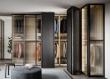The Manhattan slding door wardrobe from Pianca in Italy, has a sophisticated 110cm long handle with a tapered tip, inspired by the tapered profile of a wing, which consists of a recessed vertical groove in the door and an inner surface that can be customised in lacquered, metallic and wood finishes.