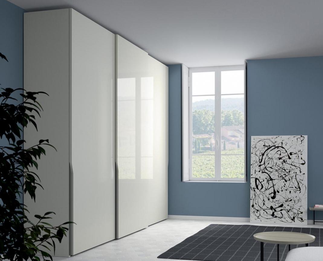 The sliding doors come in a wide range of finishes, including matt & gloss lacquer, wood, & lacquered, mirrored or metallic glass, & can be ordered at a different height to the wardrobe (for example to hide an air con unit). The inside is available in a number of colours, or can be matt lacquered.