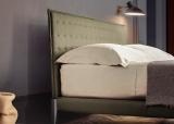 Wooden bed in all colopurs of matt lacquer, or stained in Borgogna, Canaletto, Rovere Fumo, Rovere Grigio, Rovere Laguna, Rovere Naturale and Rovere Tabacco. Headboard cushions in fabric, ecoleather, leather, or customer's own fabric.