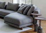 This composition of the Porada Abacus sofa by G. & O. Buratti for luxury Italian brand Porada is one of their most popular - priced as seen here (with two size options), including the integrated side table, an irregularly shaped chaise, & back cushions/armrest.