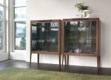 Internal glass shelves and two glass doors allow you to see your display inside the beautiful walnut cabinet, which can be left natural, stained or matt lacquered in a range of colours.