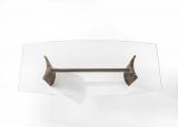 Seen and priced here are the 15mm thick clear glass top tables. It is also possible to choose a table top in range of different woods, marbles, or rock finishes (rock is a new laminated porcelain) - please Contact Us for pricing of these top finishes. The two canaletta walnut bases can be stained in either moka or wenge, left natural, or matt lacquered in a range of colours. Metal feet are in black chrome or brushed brass.