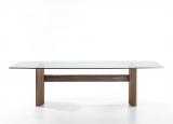 The Beam dining table has two half-moon bases in canaletta walnut joined by a wooden beam and is available in a huge variety of sizes, from 130cm to 260cm wide in depths of 100cm to 120cm, as well as two different styles of table top, the standard rectangular shape, or a barrel shaped (Botte) top.