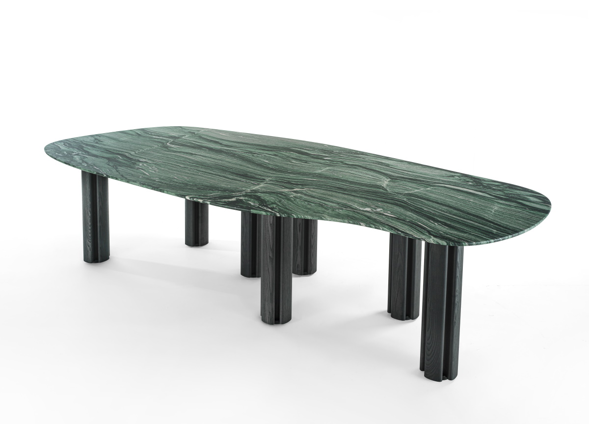 With so many size, marble and base options to choose from for ease we have priced the smallest size table. For all other sizes/prices please contact us. Pictured here is the largest Berry dining table with a Lapponia Green marble table top and frassino ash grey stained legs. It has been paired with the Porada Abby dining chair which is also designed by Carlo Ballabio - see related products.