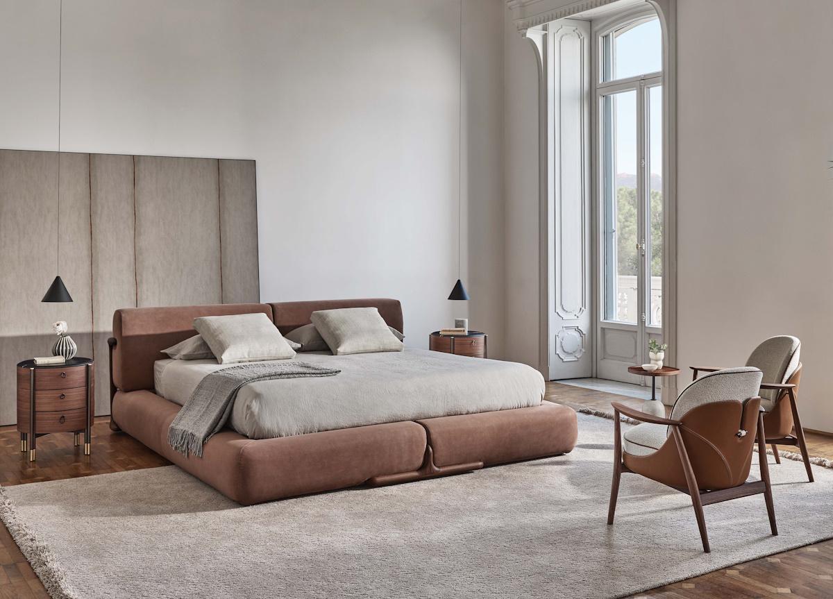 The Porada Klem bed by Giuseppe Viganò complements the Klem sofa collection and incorporates the same aesthetic details that define the rest of the collection, a combination of strict lines and supreme comfort.