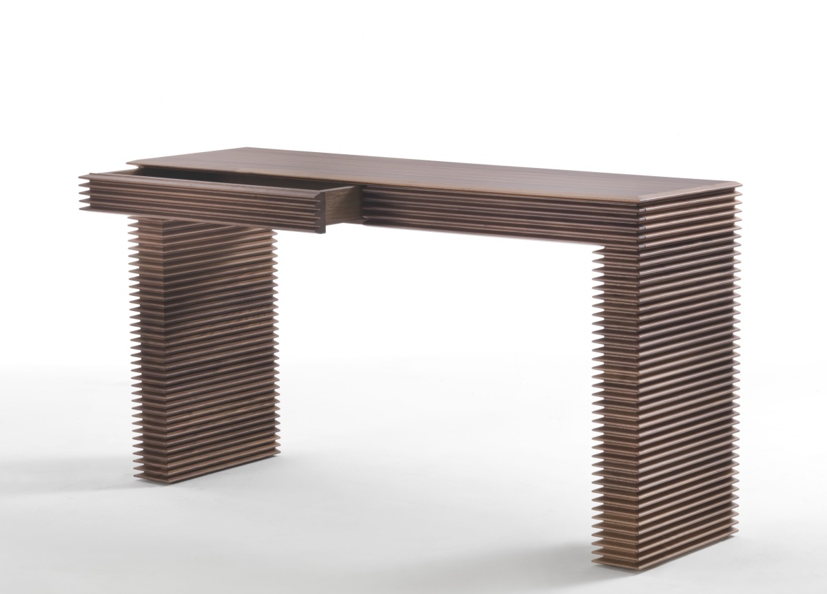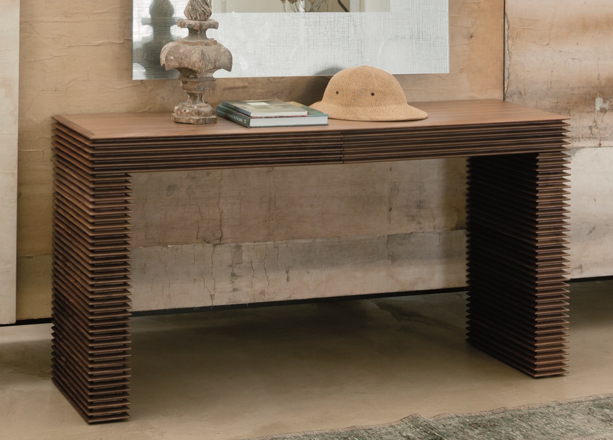 The stunning Linka Console Table, with its amazing lateral design carved into the solid Canaletta walnut frame, would make a magnificent addition to any home. Designed by the highly regarded Tarcisio Colzani for luxury Italain brand, Porada it has two useful drawers.