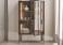 Elegant and stylish, the Matics 2 display cabinet in canaletta walnut has two Stopsol super silver clear glass hinged doors with grey pewter metal profiles. The back panel is available in wood, textured bronze metal or cuoio leather in the colours from the Porada collection. The frame and metal base are in a smart grey pewter finish.