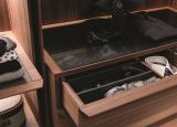 Completely customisable My Suite includes a range of accessories from drawers, glass shelves & cabinets, to pull-out hangers, shoe cupboards & racks, pigeonholes and dividers, all in a variety of finishes from wood and smoked glass to cuoietto leather. Handles are in braided leather with metal detail. It is even possible to have the shelves lit from below with LED lights.