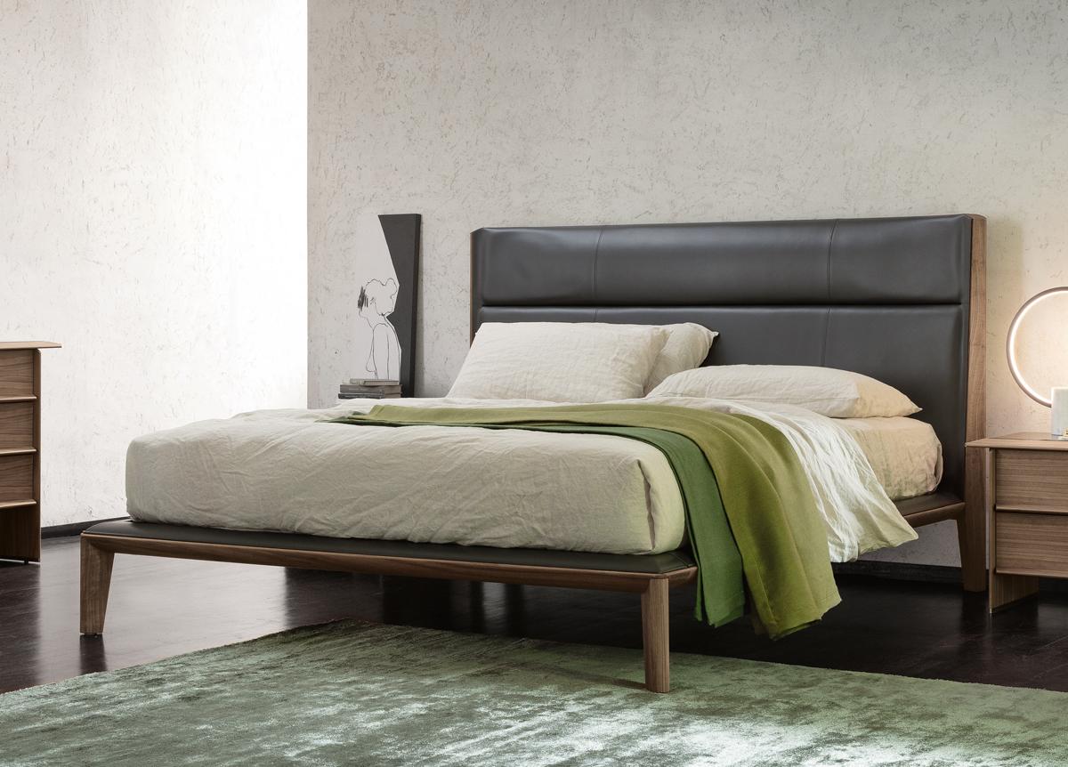 Featuring a solid Canaletta walnut frame, the Nyan bed has an extremely comfortable tall bed back and bed surround which can be upholstered in either Cuoietto or Cuoio leather, as well as over 200 different choices of fabric, several other categories of leather, or eco-leather, or you can even use your own material (subject to suitability).