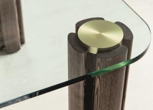Available in three sizes, this compact dining table is perfectly suited to smaller spaces. The table top is in clear glass (thickness 15mm) with a UV-glued brushed brass plate.
