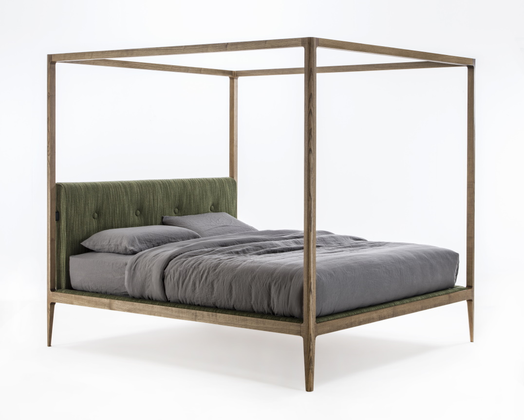 Carlo Ballabio has added a four poster "baldacchino" version of his top-selling Porada Ziggy bed. Featuring a solid Canaletta Walnut or Frassino Ash frame which can be selected in a range of finishes.