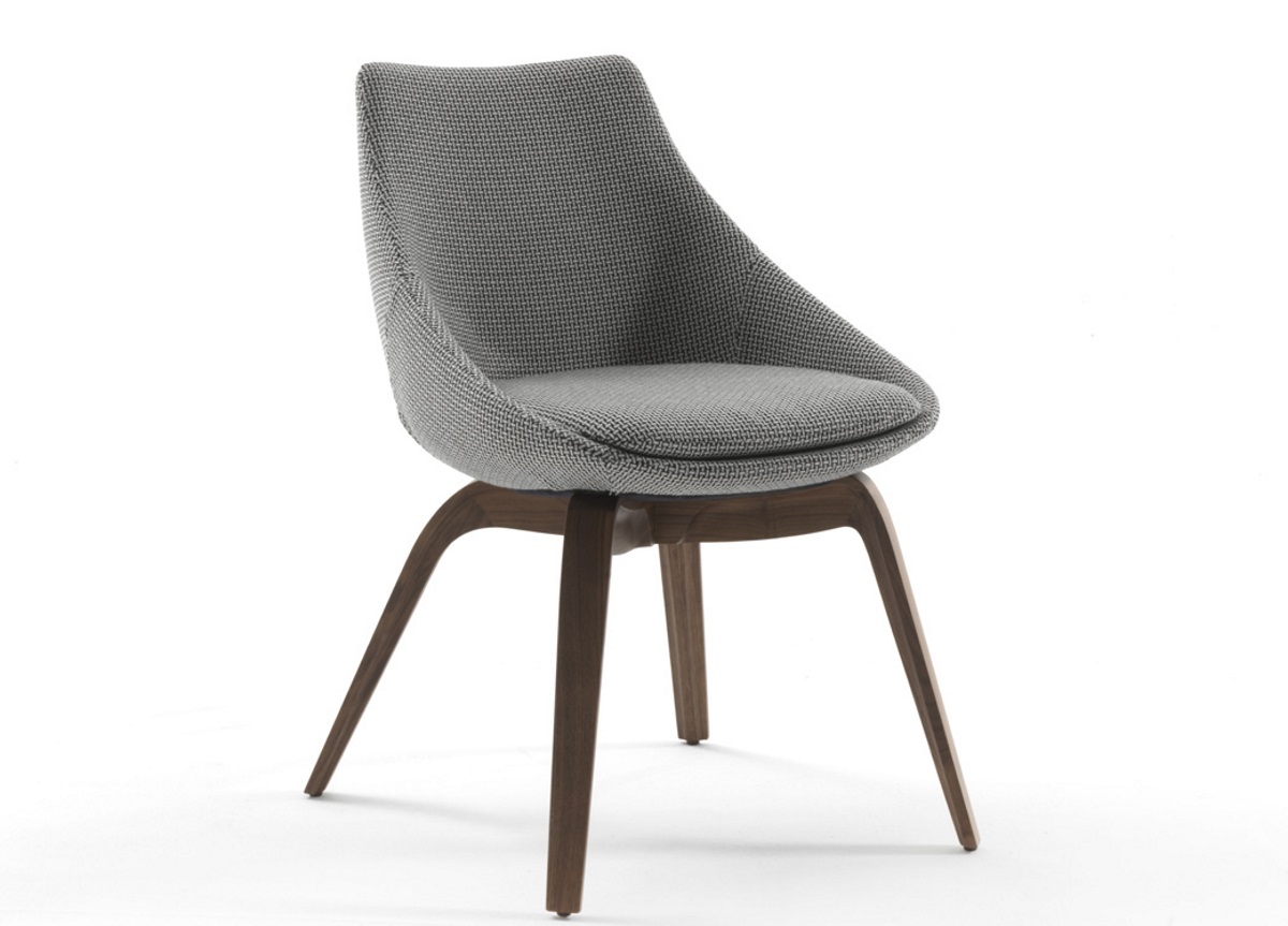 The solid Canaletta walnut frame can be left natural, stained or matt lacquered in a range of colours. This versatile chair can be covered in over 200 different choices of fabric, leather or eco-leather, or even your own material (subject to suitability).