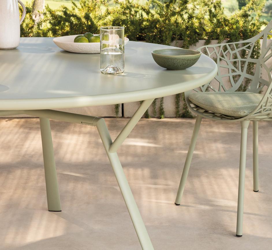 The main image shows the table in a Green Tea finish with Selva garden armchairs in a matching colour. Part the Radice Quadra collection of contemporary garden tables which also includes a rectangular table and a square table - see related products.