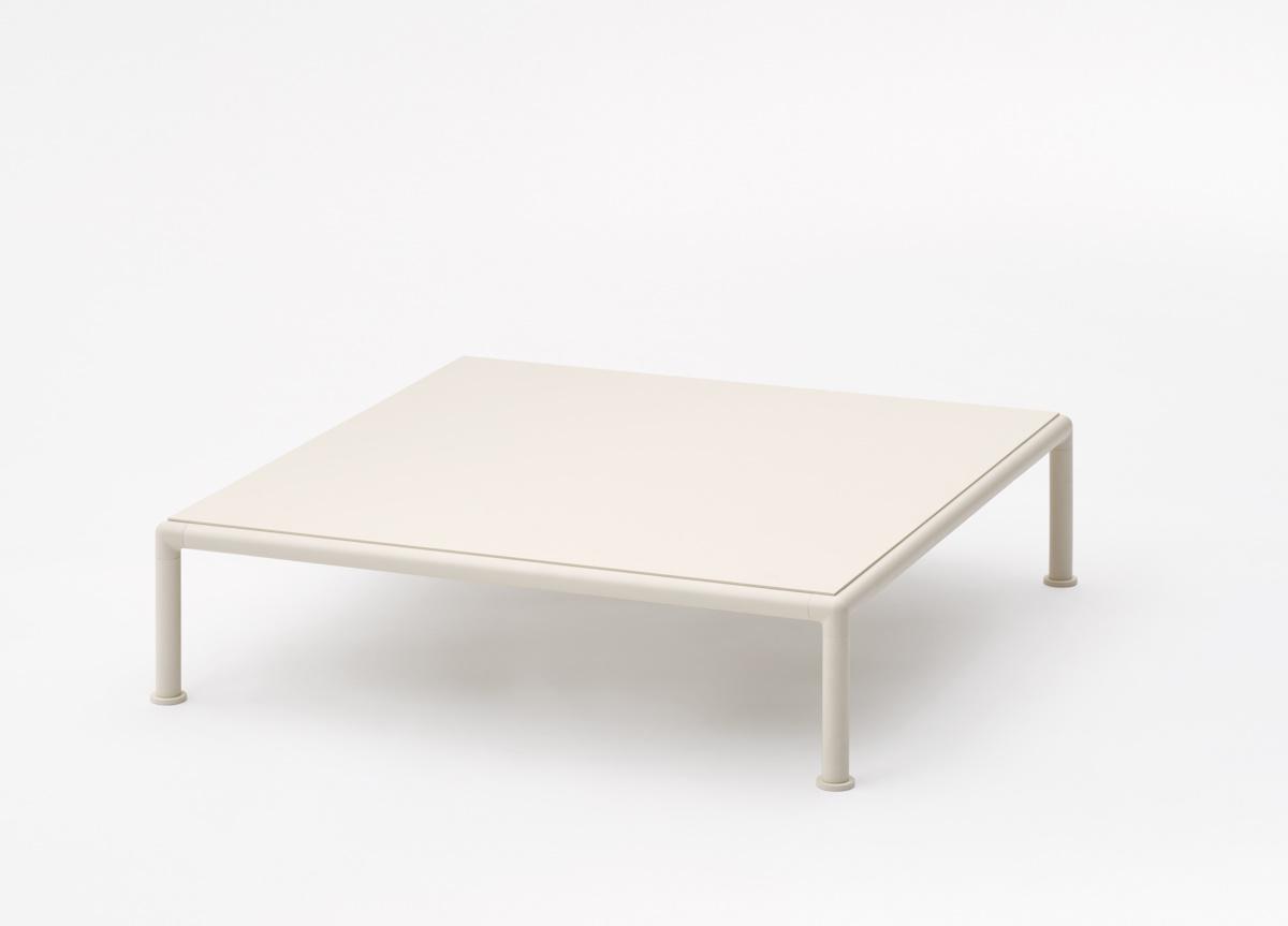 Frame in aluminium and available in all of the colours in the Fast collection. The table top is in a matching aluminium to frame, teak slats, or several colours of ceramic porcelain stoneware, or Lava stone.