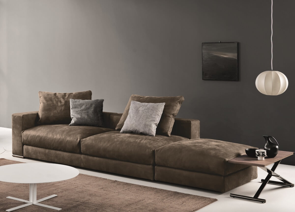 Choose from multiple elements including central, chaise-longues, side and end units & poufs allowing you to create endless arrangements perfectly tailored to your personal requirements. Unusually for a sofa system Ananta offers you the choice of two different kinds of padding for the seats, either goose feathers, or high-density foam.