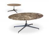 The Saba Italia Hexa coffee table by Enzo Berti and can be selected in two sizes; one round, & one oval, with a marble table top, & has a matching side table.