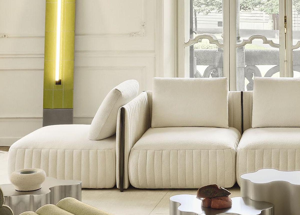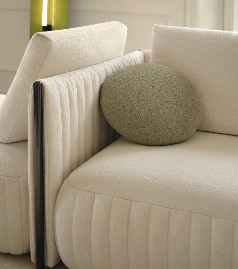 For the practical intuition behind the Metis sofa Saba have used stylish metal hinges in either black or black nickel as the visible element between the backrests. This application allows for maximum flexibility, a linear yet soft look enhanced by precious quilting on the seats, backrests, and armrests.