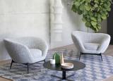 The extremely comfortable ‘Oltremare’ collection, which also includes a sofa and pouf, was inspired by a sofa Marras coveted as a small child in the house of a relative. Its wonderfully organic curves also pay homage to Capo Caccia, the rocky promontory visible from his Sicilian home. The striking curve of the backrest forms a wave-like, asymmetric line that flows organically into the arms. The resulting nest like-shape sits on a slim, varnished black metal base.