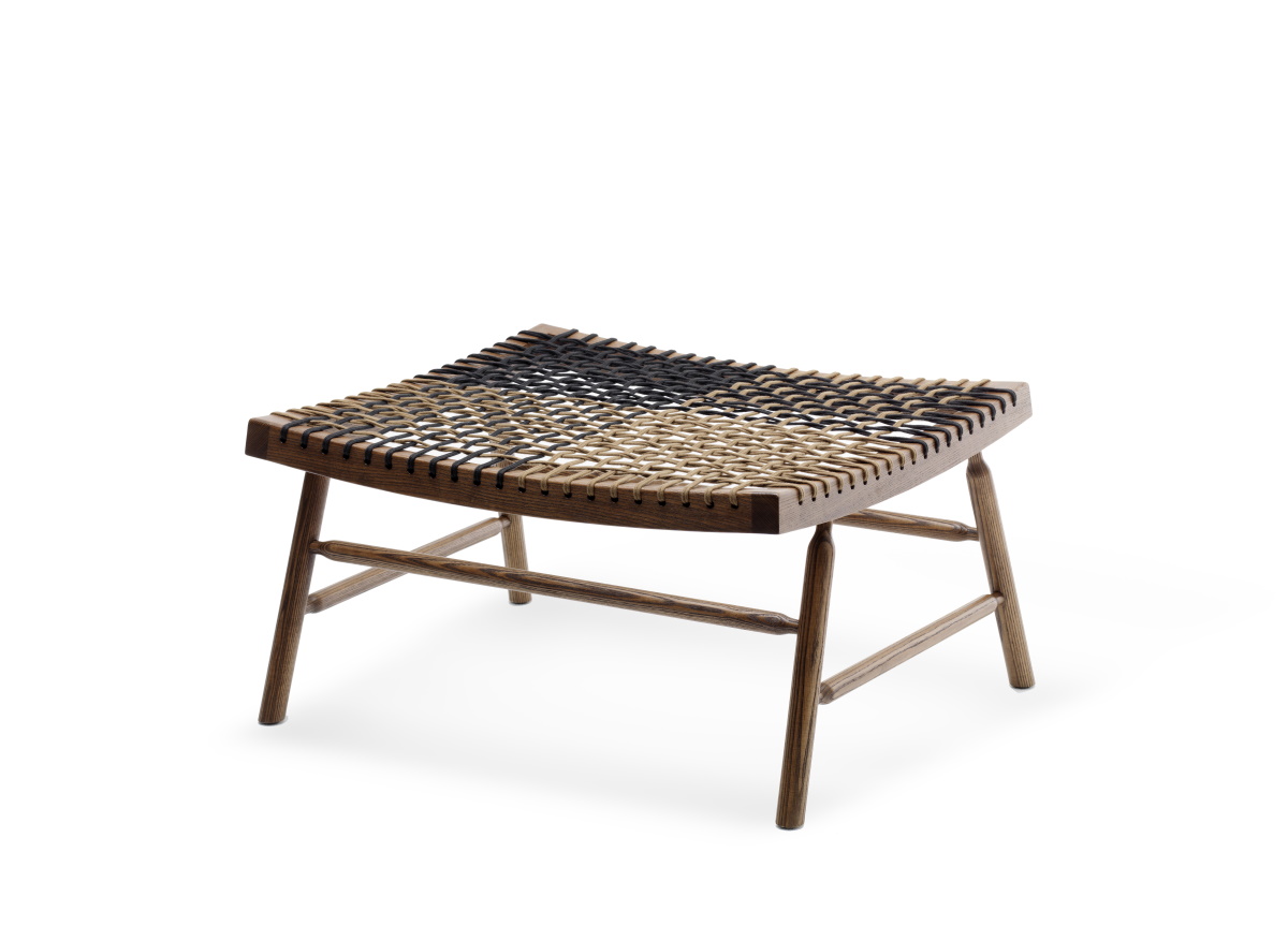 The frame is made from curved solid ash wood which can be chosen in a polished open-pore walnut colour or matt black. The seat is inter-woven in different shades, beige or beige/black for the walnut and grey/black for the matt black.
