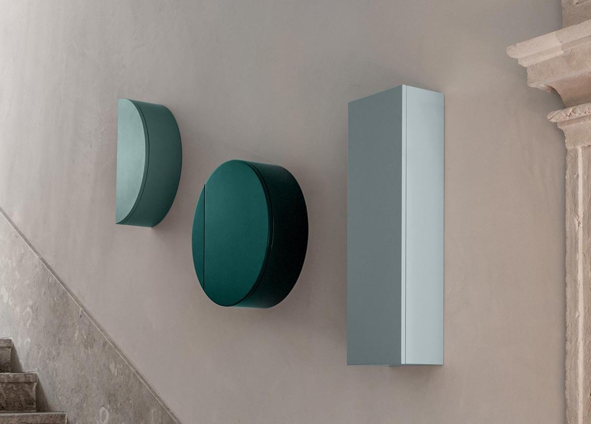 The Simetria Cabinet is designed by Besau Marguerre for luxury brand Shconbuch. It comes in eight different sizes, all of which are either 14cm or 18cm deep. Circular, semi-circular, rectangular and square, their subtle forms give them a natural, elegant appeal.