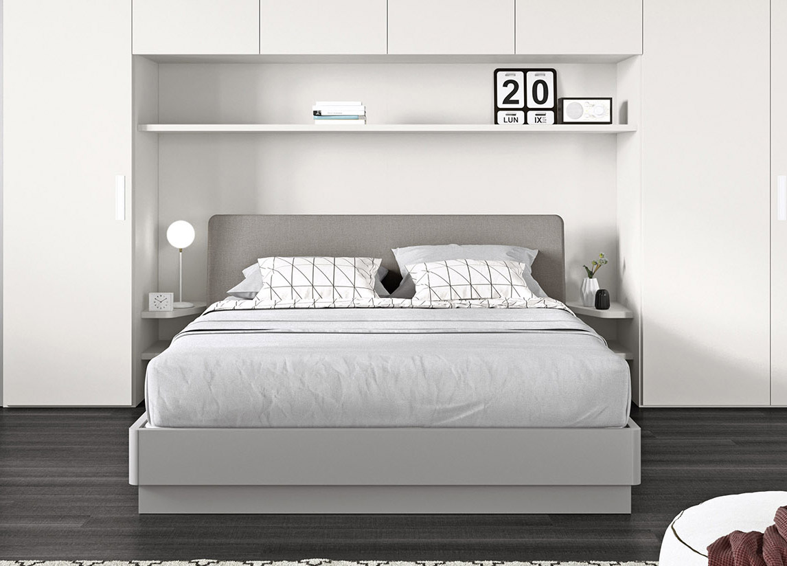 Shown here in bed is made from an Italian melamine which is high quality and chosen for it's strength and durability. There are two price categories; basic and smart, with several colour and finish options to choose from. To see the options for each, please click here.