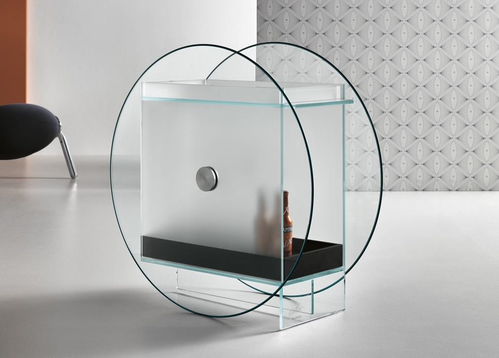Kart doesn't just look good, it is also a fully functioning drinks trolley with large oversized wheels (made from extra-clear glass) which allow it to move freely around your living room.