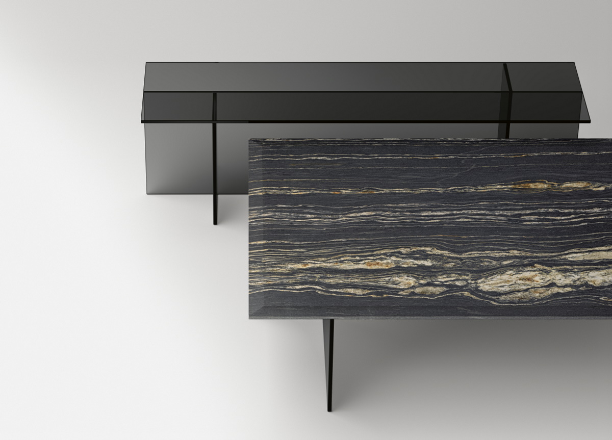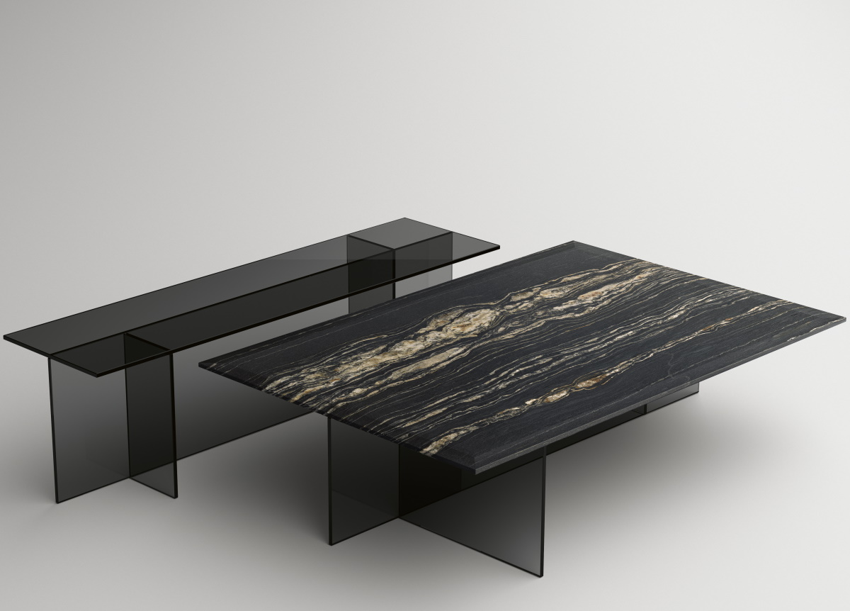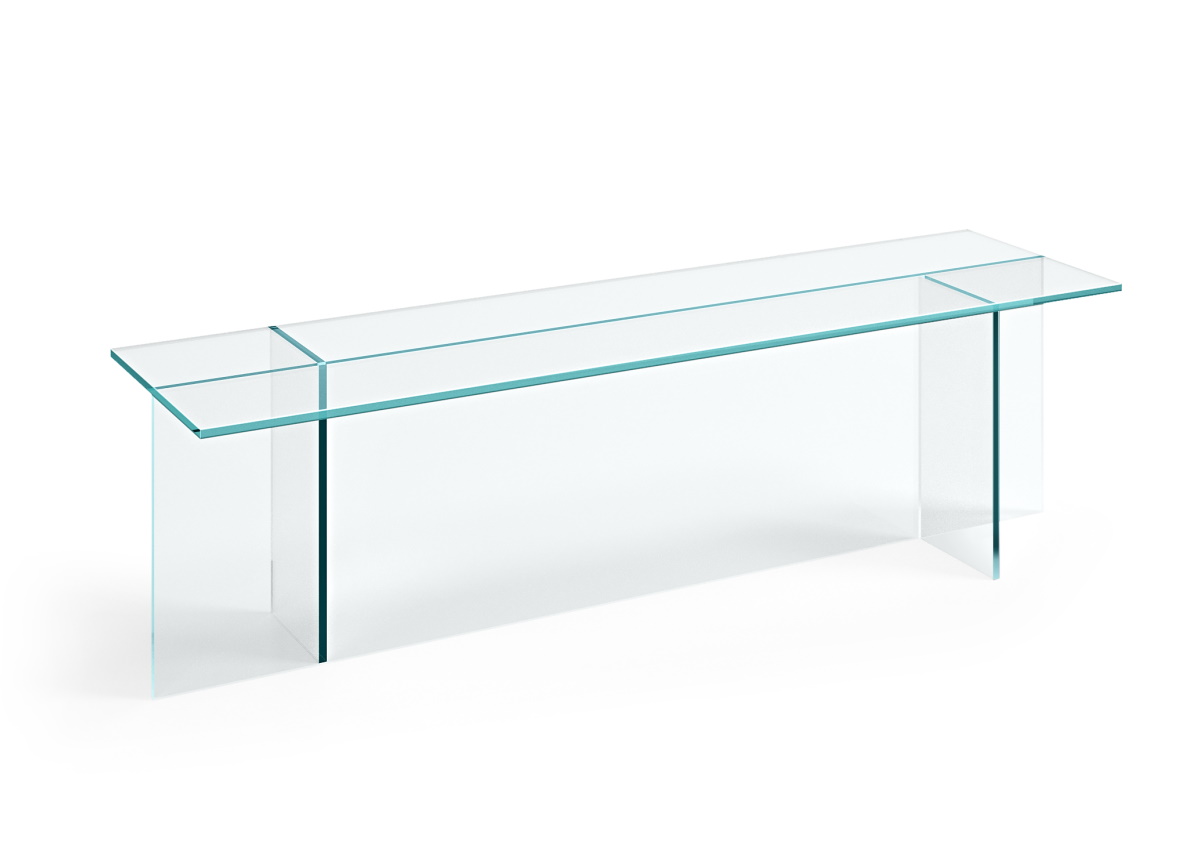 The Tonelli Sestante coffee table by Emilio Nanni is made in Italy by glass furniture specialists Tonelli Design. Sestante has a strong essential design with vertical, symmetric and orthogonal structural elements and is available in three glass finishes.